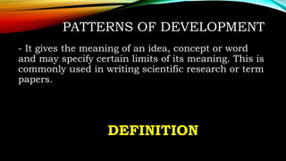 [WRITING] PATTERNS OF DEVELOPMENT - Definition & Classification Patterns