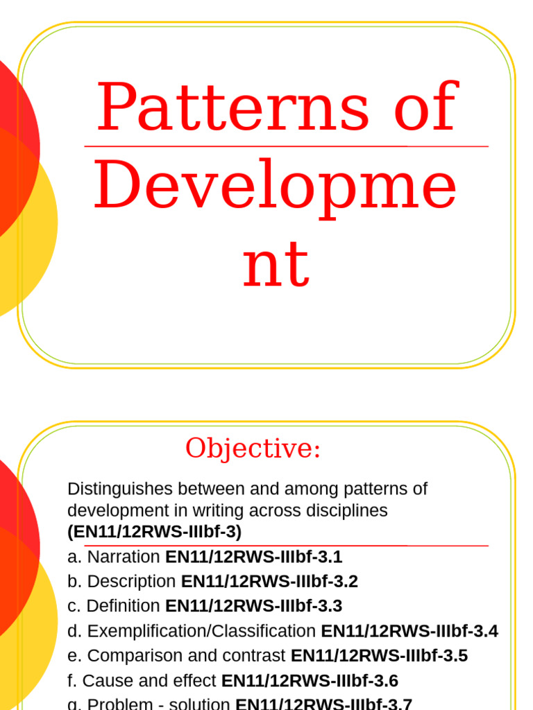 Patterns of development in writing GRADE 11 pptx | PPTX