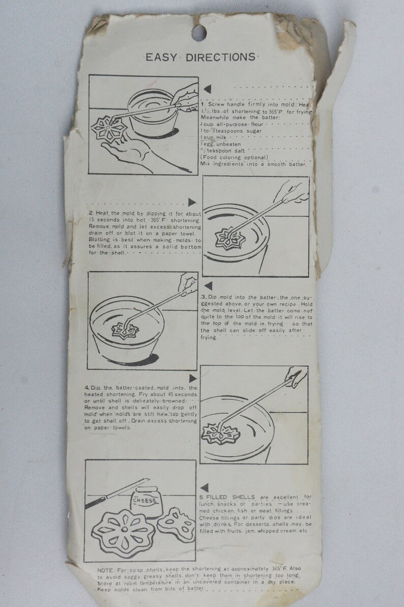Vintage Patty Shell Set With 9 Molds and 4 Handles Easy Directions and ...