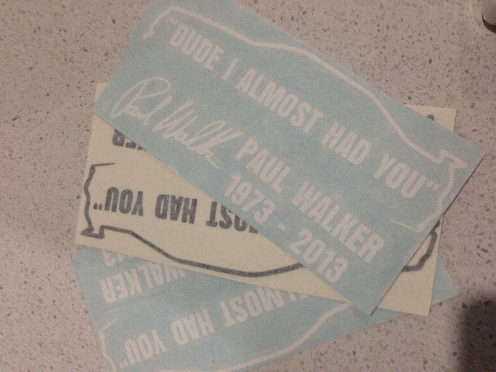 Paul Walker Sticker Memorial Tribute Car Sticker RIP DUDE I ALMOST W - Etsy
