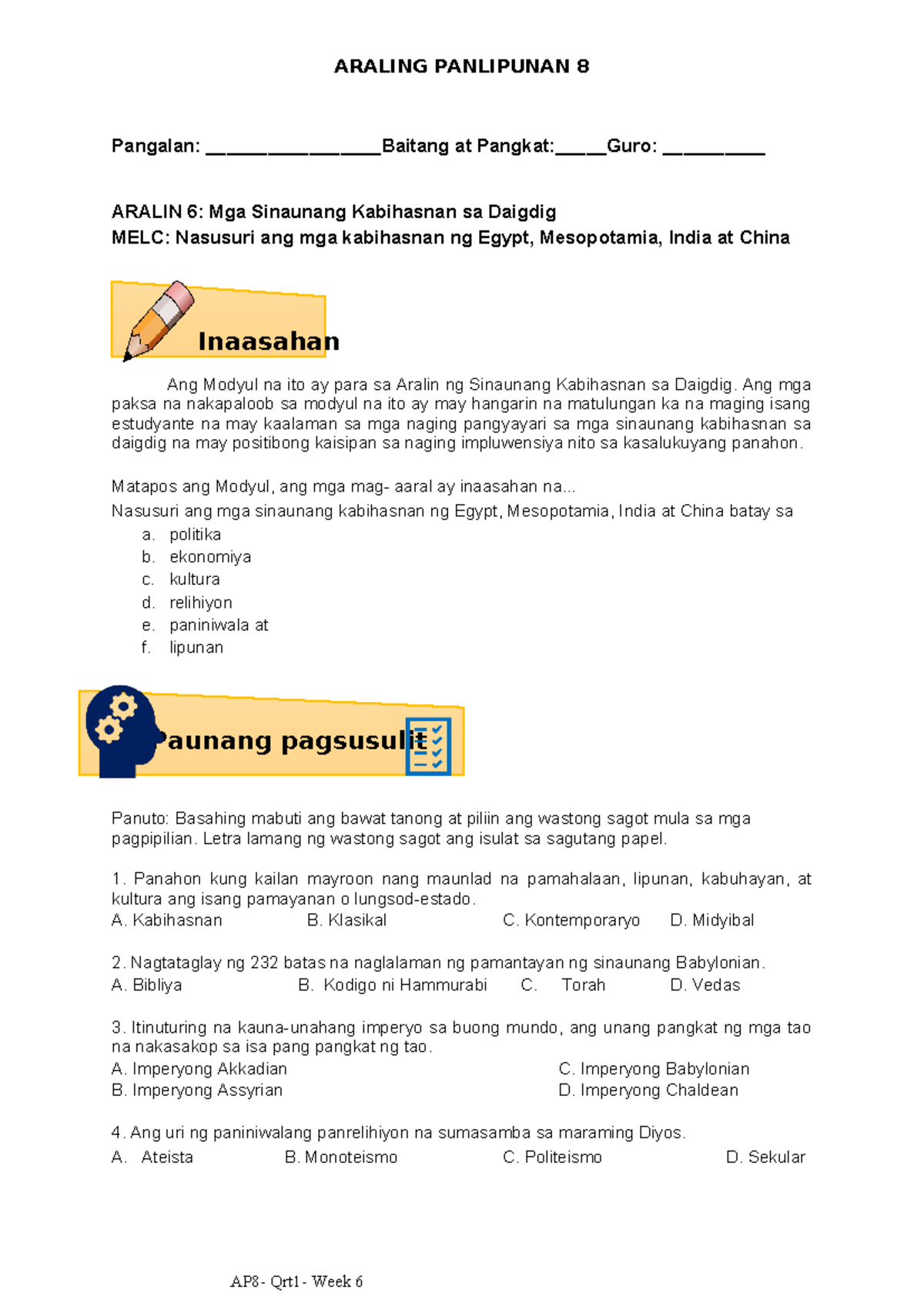 8-AP-Qtr-1-Week-6-Validated-LONG-printing - Paunang pagsusulit Pangalan
