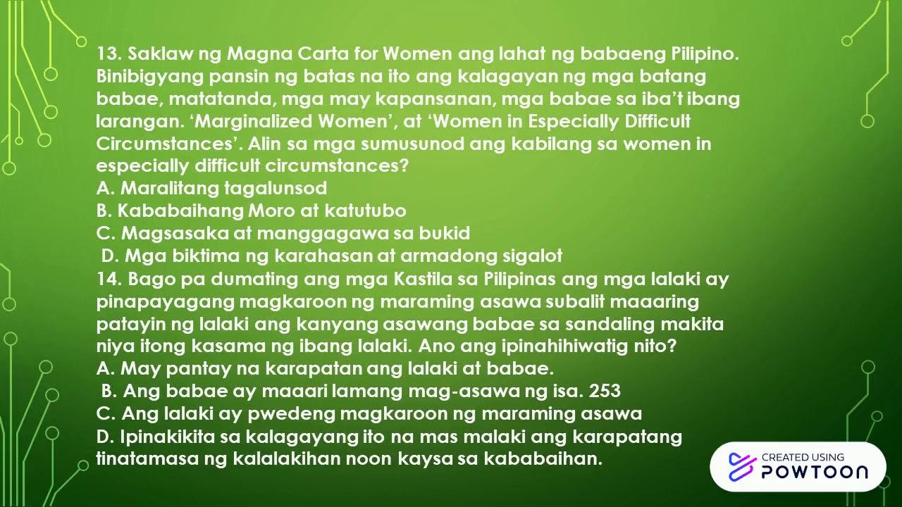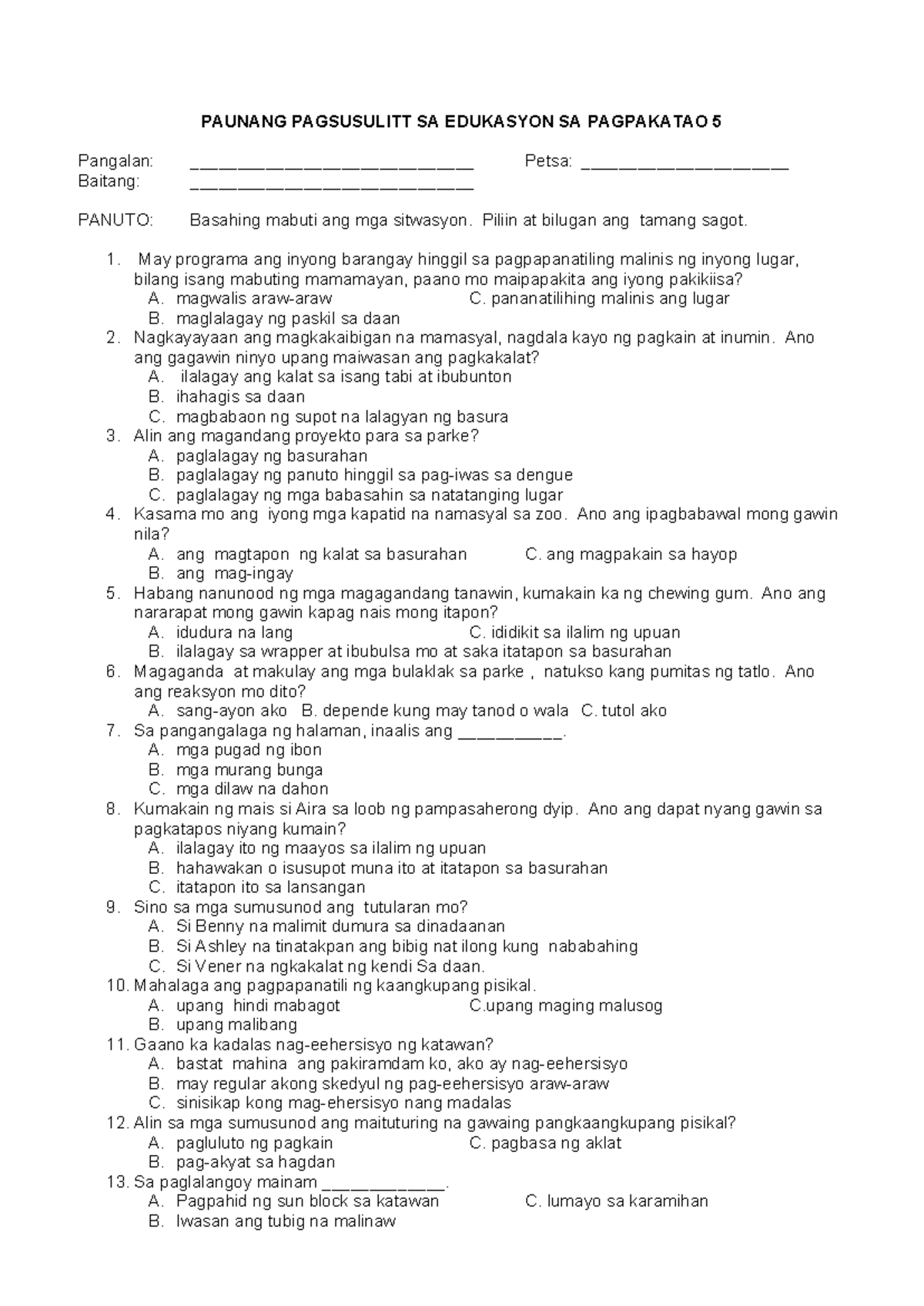 PAUNANG PAGSUSULIT SA EDUKASYON SA PAGPAKATAO 5: PRE-TEST - Studocu
