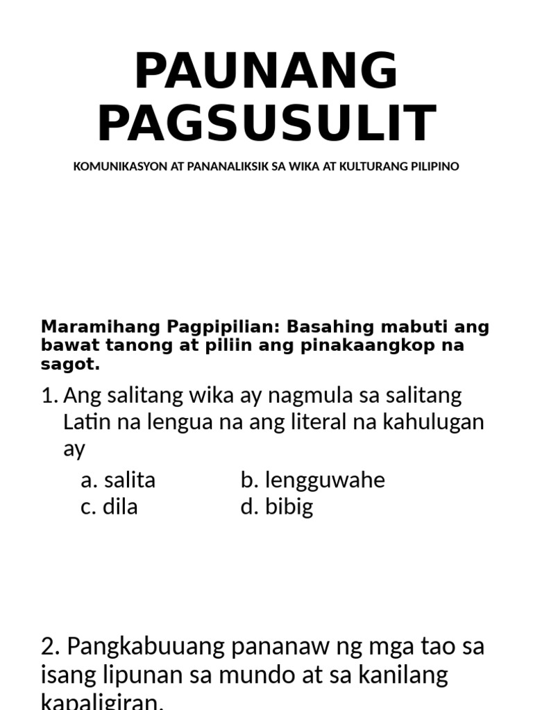 Paunang Pagsusulit Sa FILI0 2 | PDF