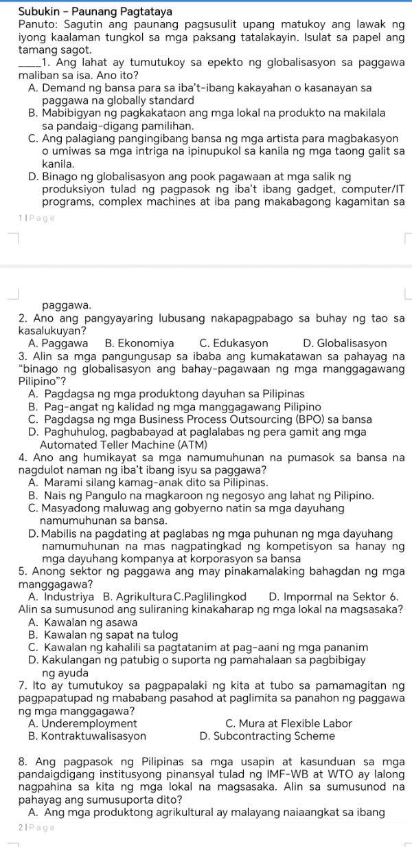 Paunang Pagsusu-WPS Office - PAUNANG PAGSUSULIT PANGALAN: Hanna M ...
