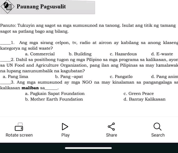 Paunang Pagsusulit Handa ka na ba? Subukan mong sagutin ang mga sumusuno..