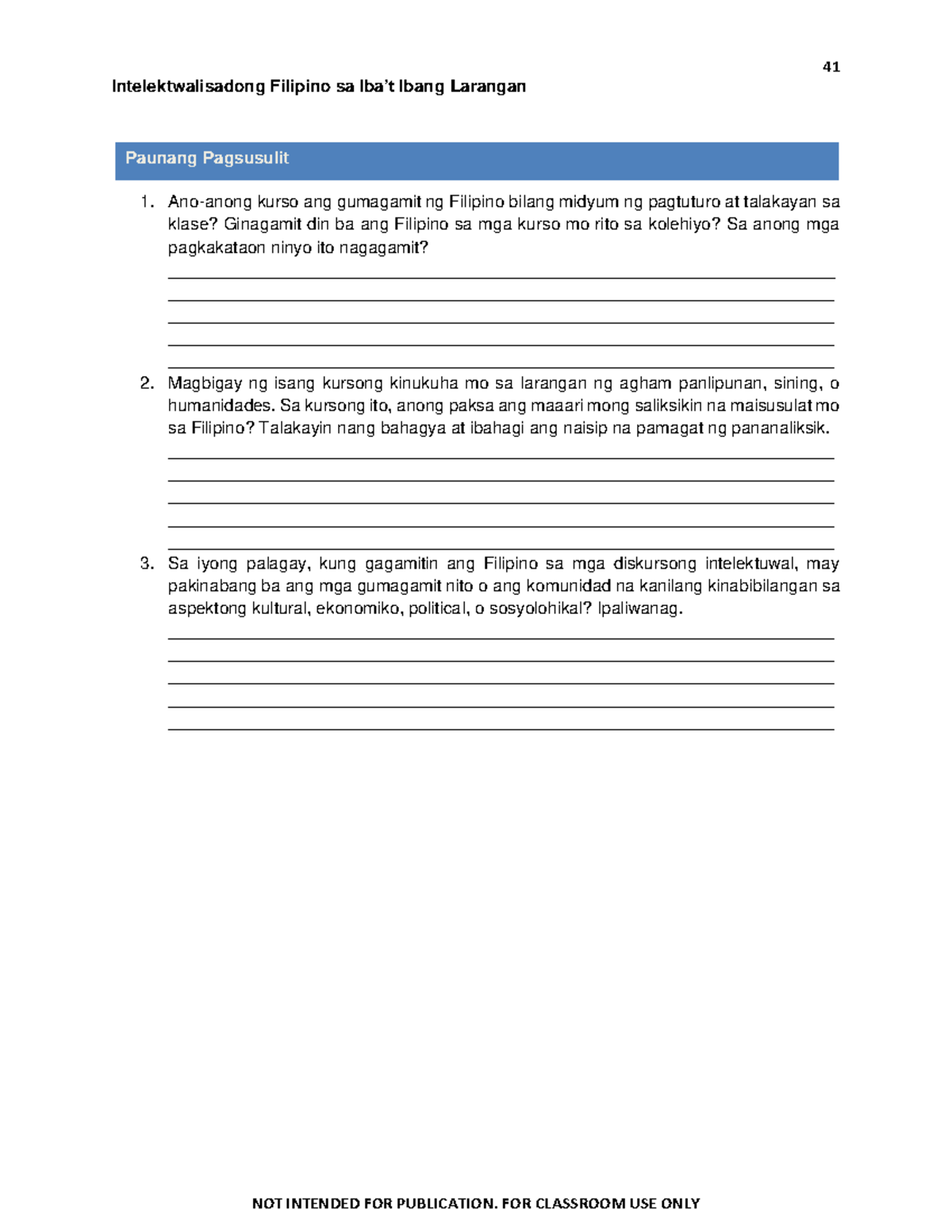 FIL2. Yunit 4.Paunang Pagsusulit - 41 Intelektwalisadong Fi lipino sa ...