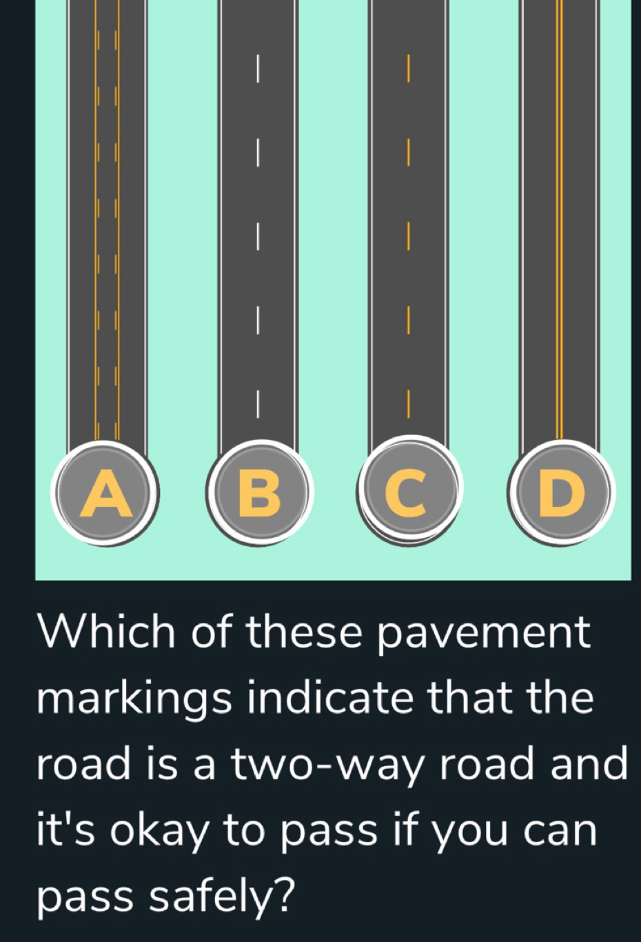 Solved: A B C D Which of these pavement markings indicate that the road ...