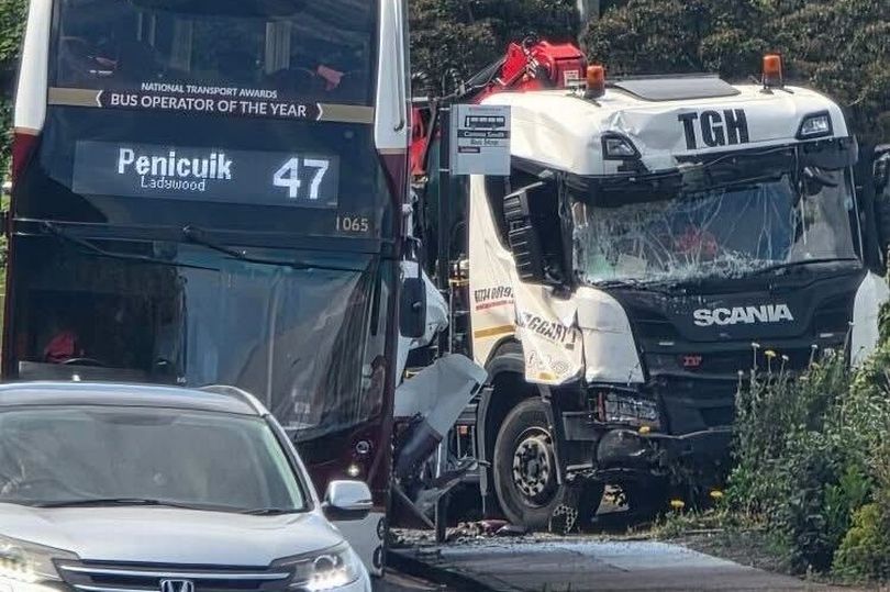 Edinburgh HGV crashes on busy road as glass strewn across pavement