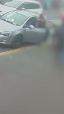Moment raging motorist mounts pavement in furious row