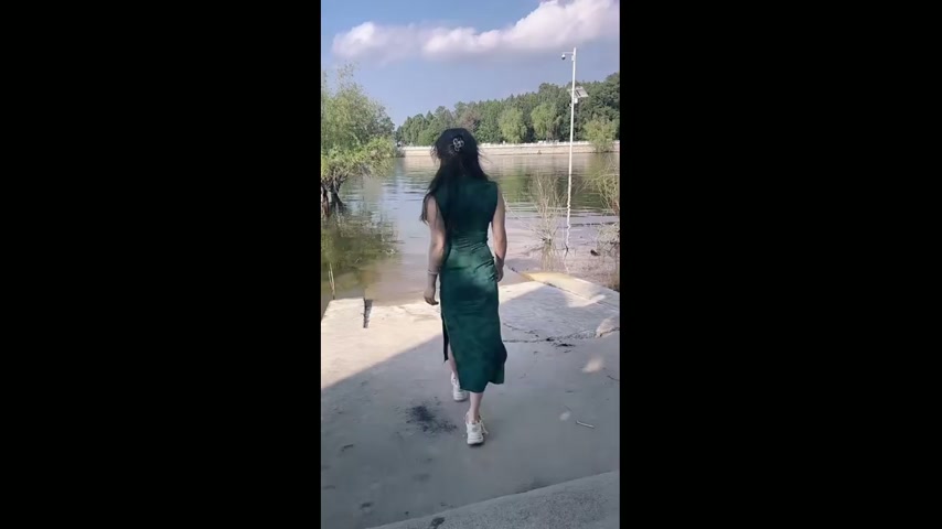 Woman slips near lakeside pavement in Henan, China