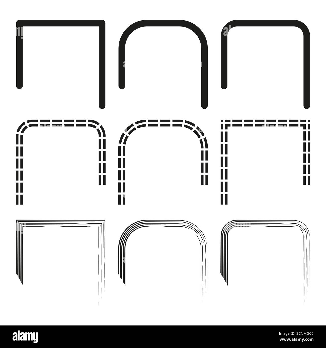 Road corner illustration. Dashed line path. Pavement street pattern ...