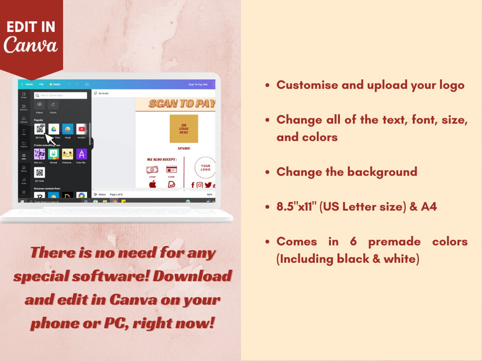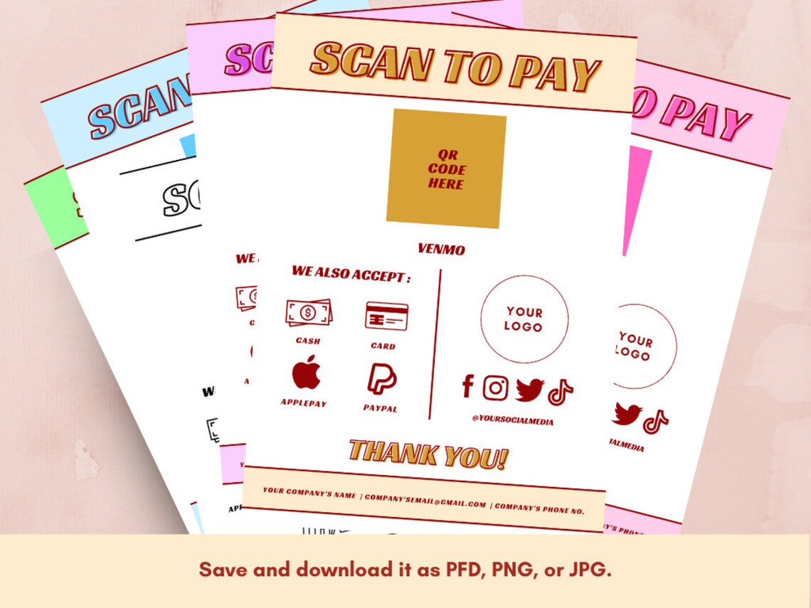 Scan to Pay Template | Printable Scan to Pay| QR Template | 5 Premade ...