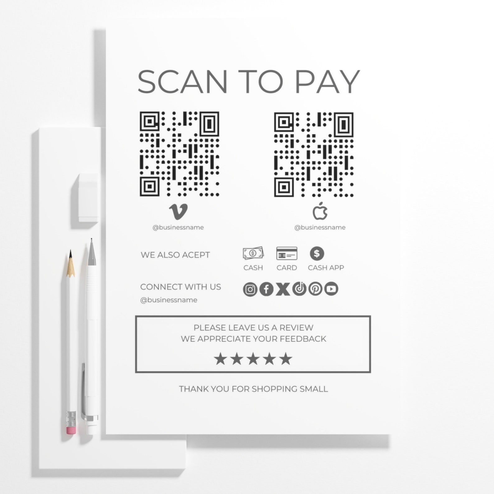 Scan to Pay Sign: Editable QR Code for Cashapp, Venmo, Paypal Instant ...