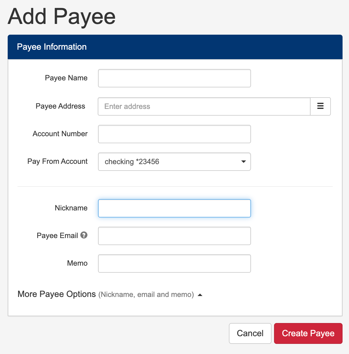 Creating a payee within Bill Pay