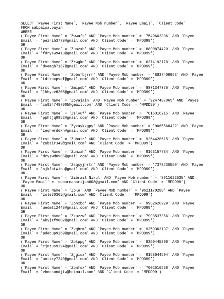 SELECT 'Payee First Name', 'Payee M | PDF