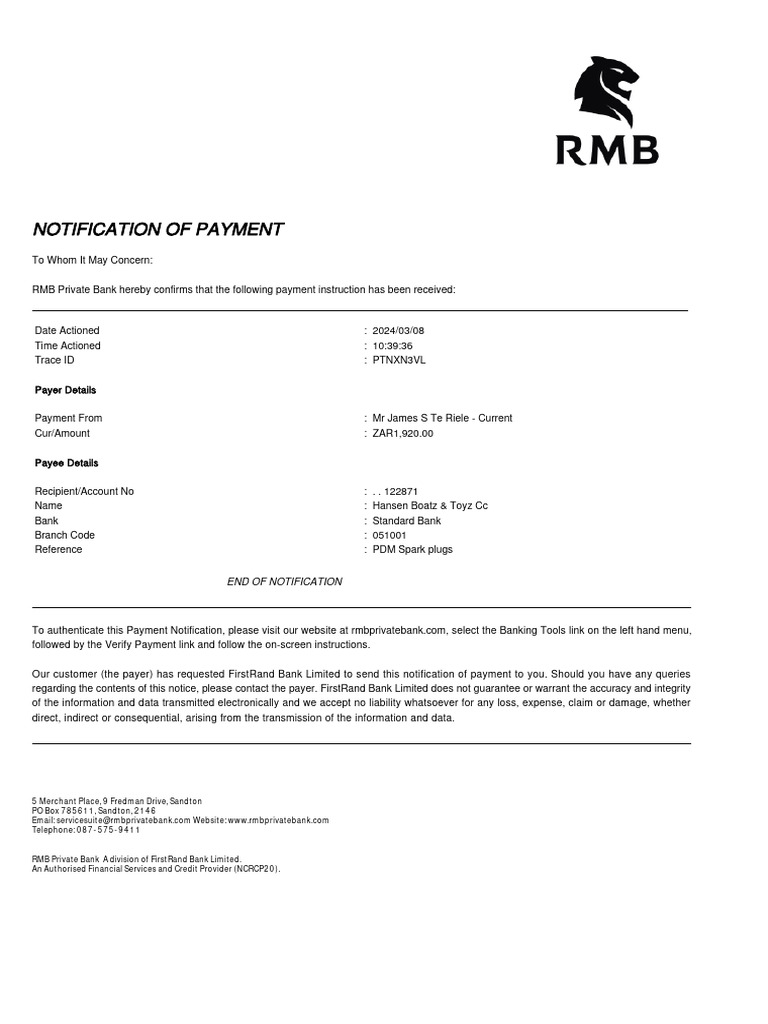 Payment Notification FNB | PDF | Payments
