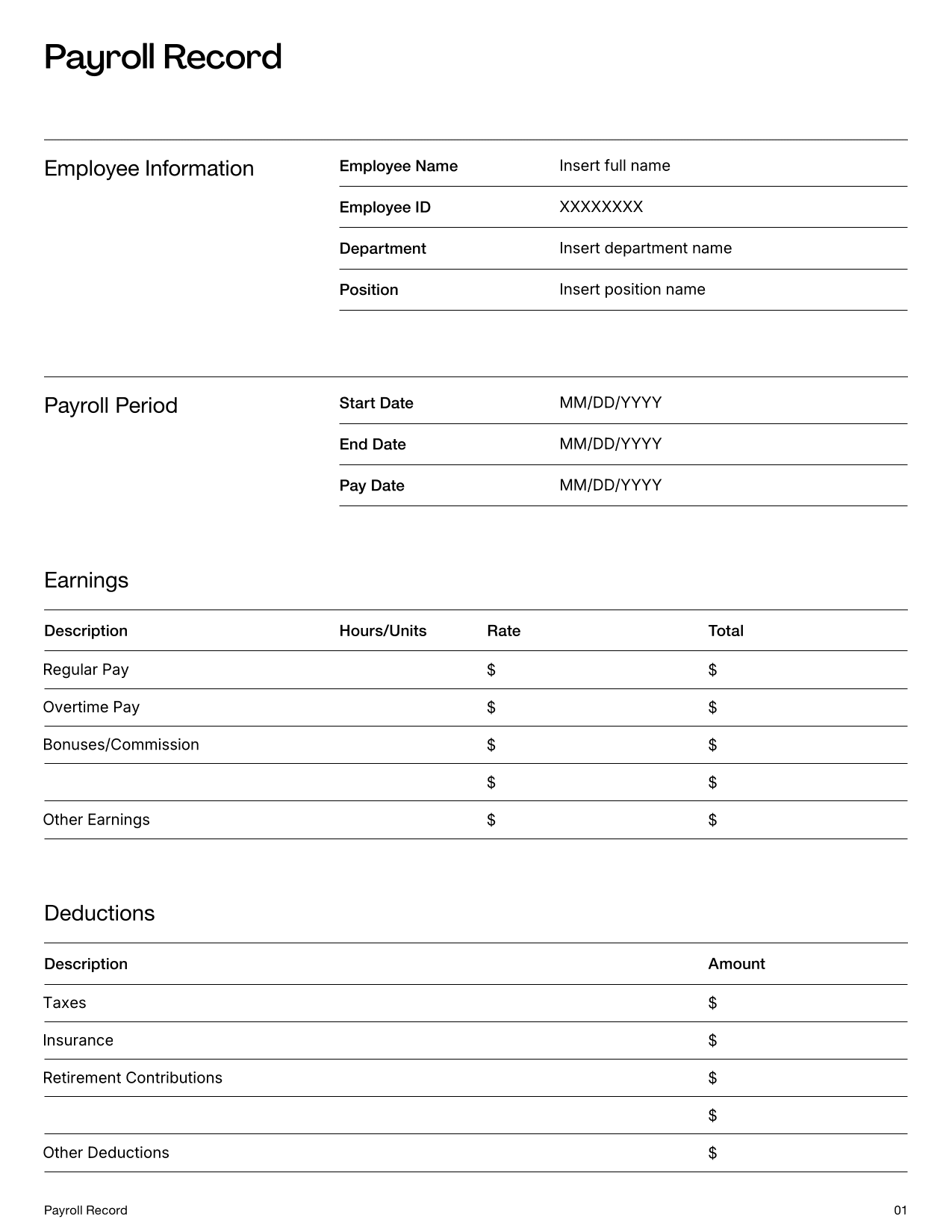Payroll Record Sheets Printable Record Keeping / Importance Of