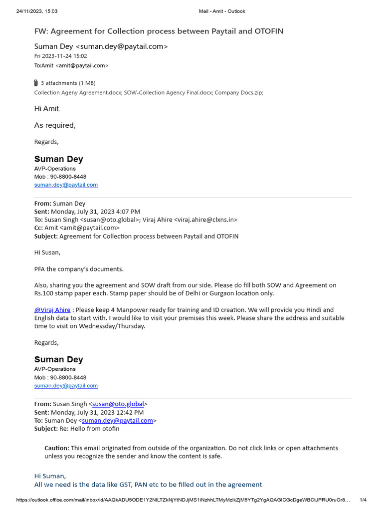 Paytail-OTOFIN Collection Agreement | PDF | Service Industries