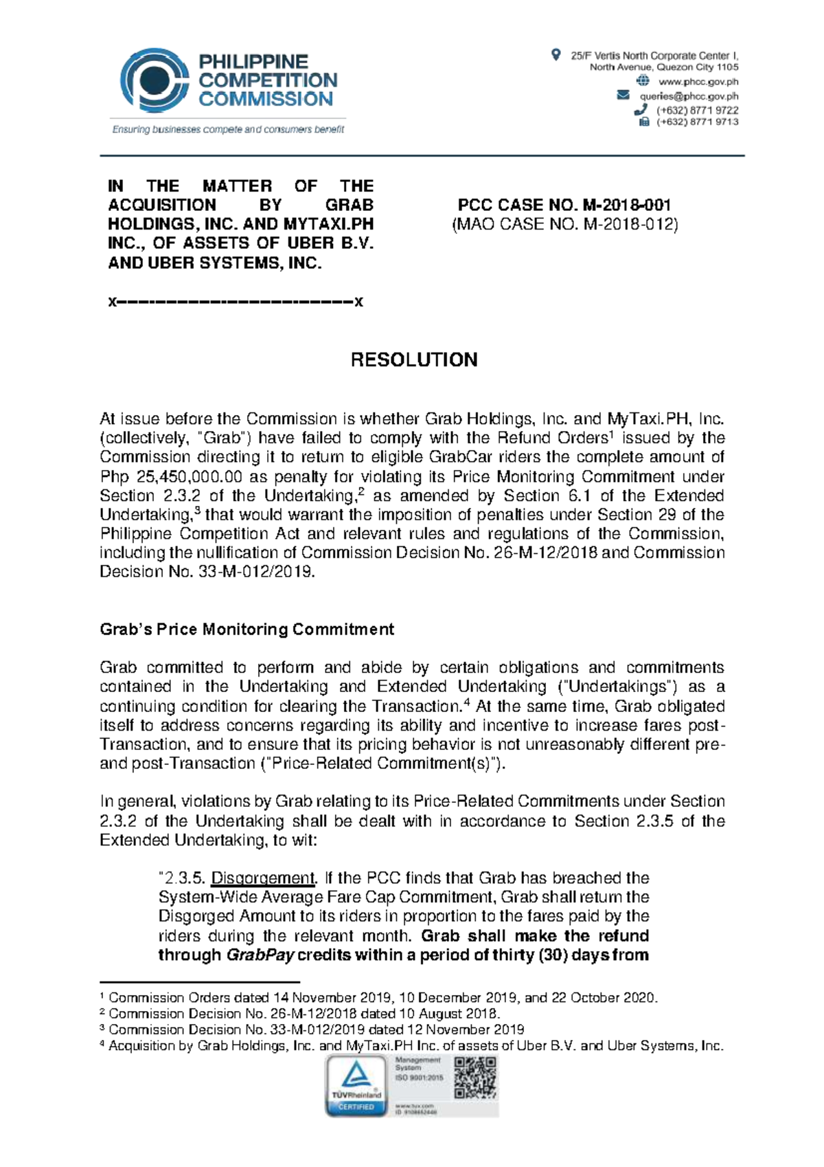 PCA - Sample Case - IN THE MATTER OF THE ACQUISITION BY GRAB HOLDINGS ...
