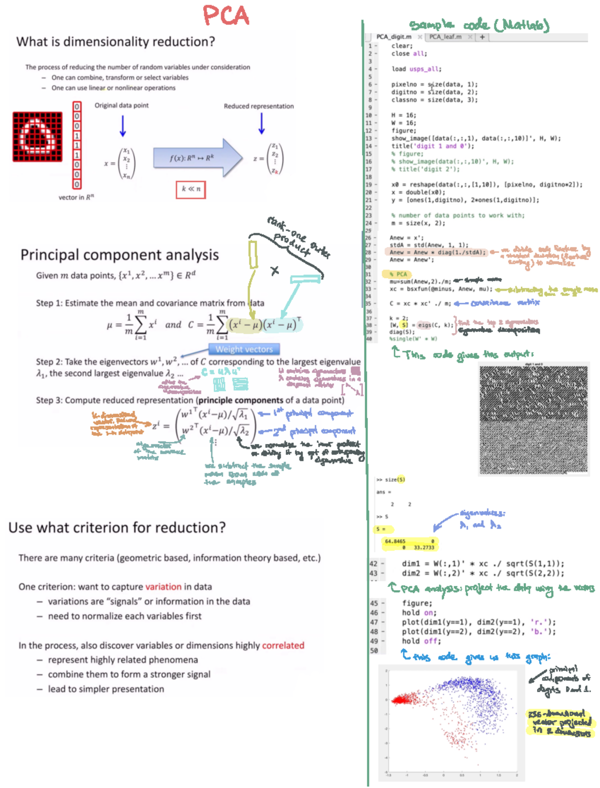 Week 3 - Principal Component Analysis notes - PCA sample code Matlab if ...