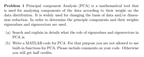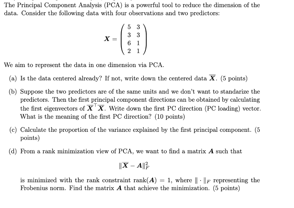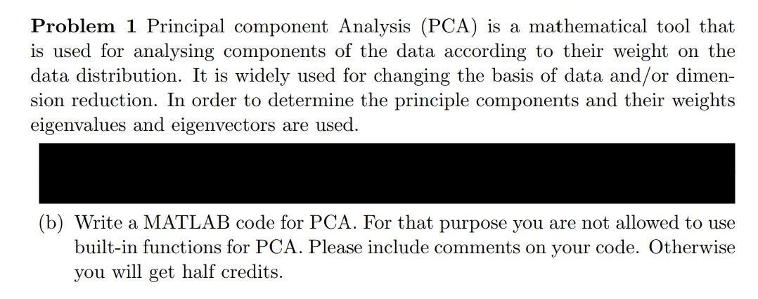 Solved Problem 1 Principal component Analysis (PCA) is a | Chegg.com
