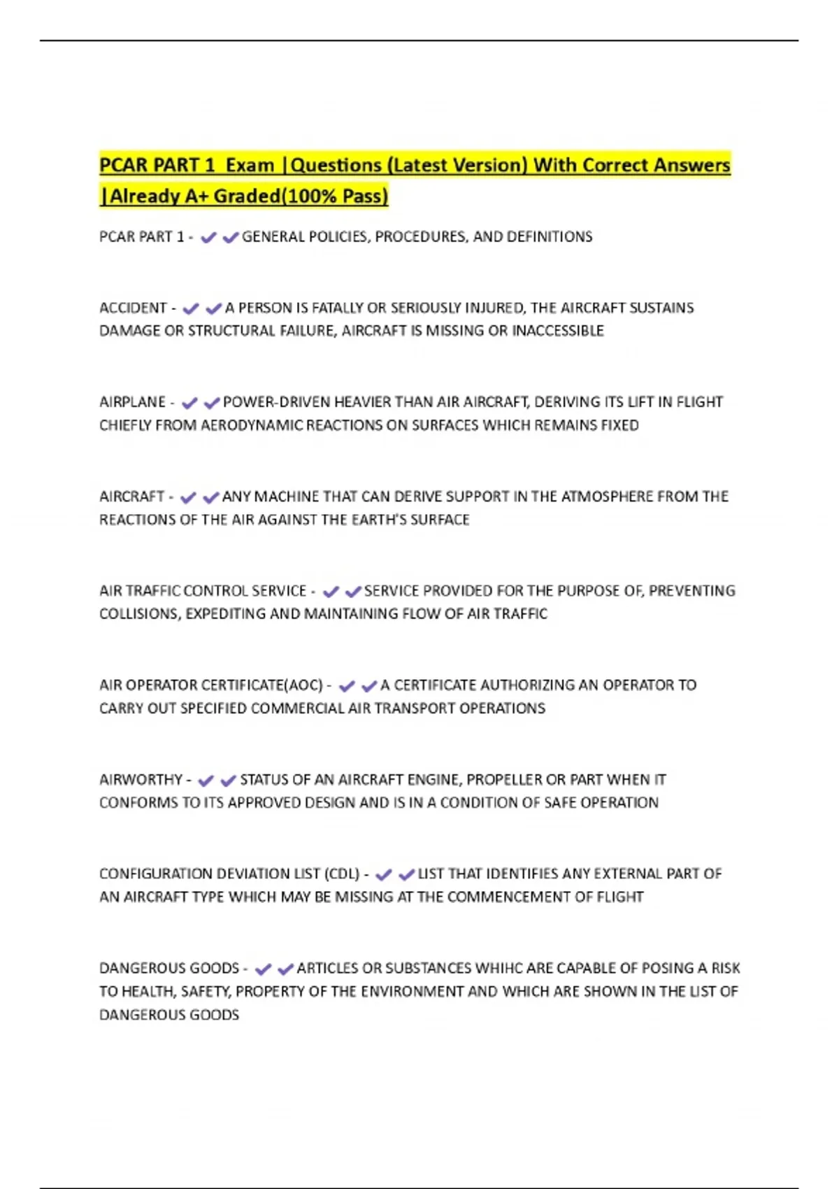 PCAR PART 1 Exam |Questions (Latest Version) With Correct Answers ...