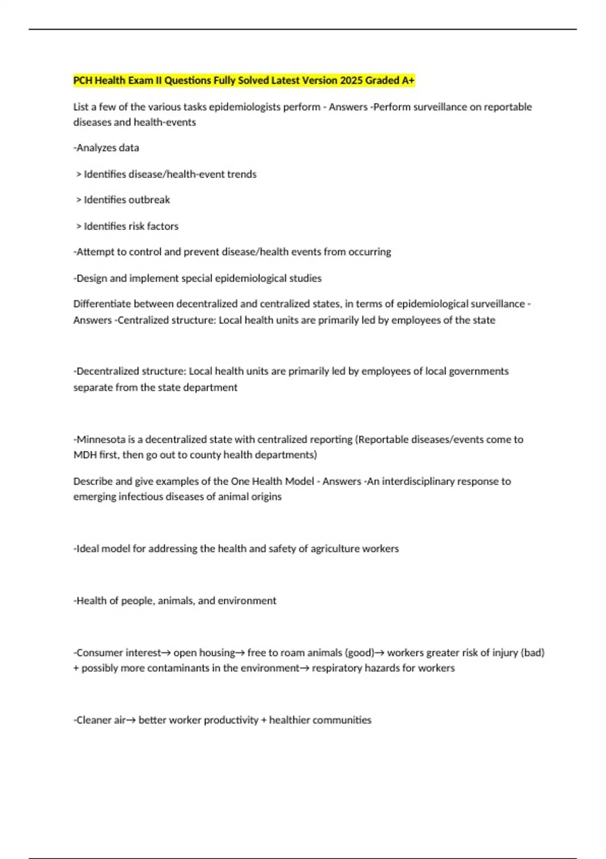 PCH Health Exam II Questions Fully Solved Latest Version 2025 Graded A+ ...