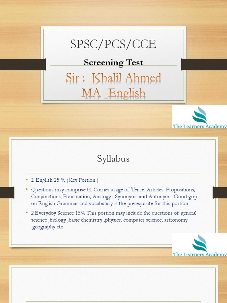 SPSC Pcs Screening Test Guide by Ilmi (Toc) | PDF