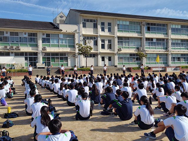 朝集会~綱引き|明石市立大久保北中学校