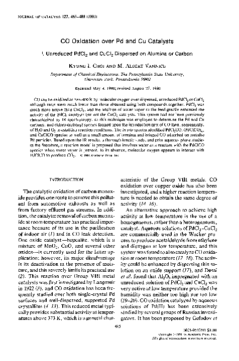 (PDF) CO oxidation over Pd and Cu catalysts I. Unreduced PdCl2 and ...