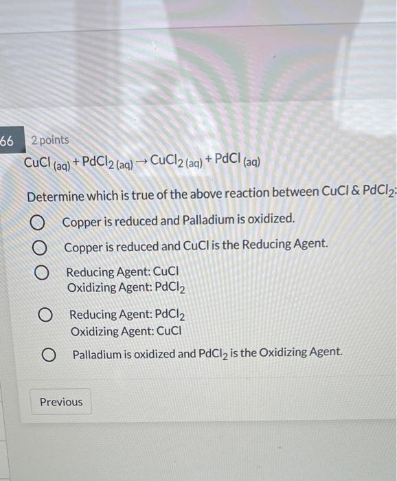 Solved 66 2 points CuCl(aq) + PdCl2 (aq) CuCl2 (aq) + PdCI | Chegg.com