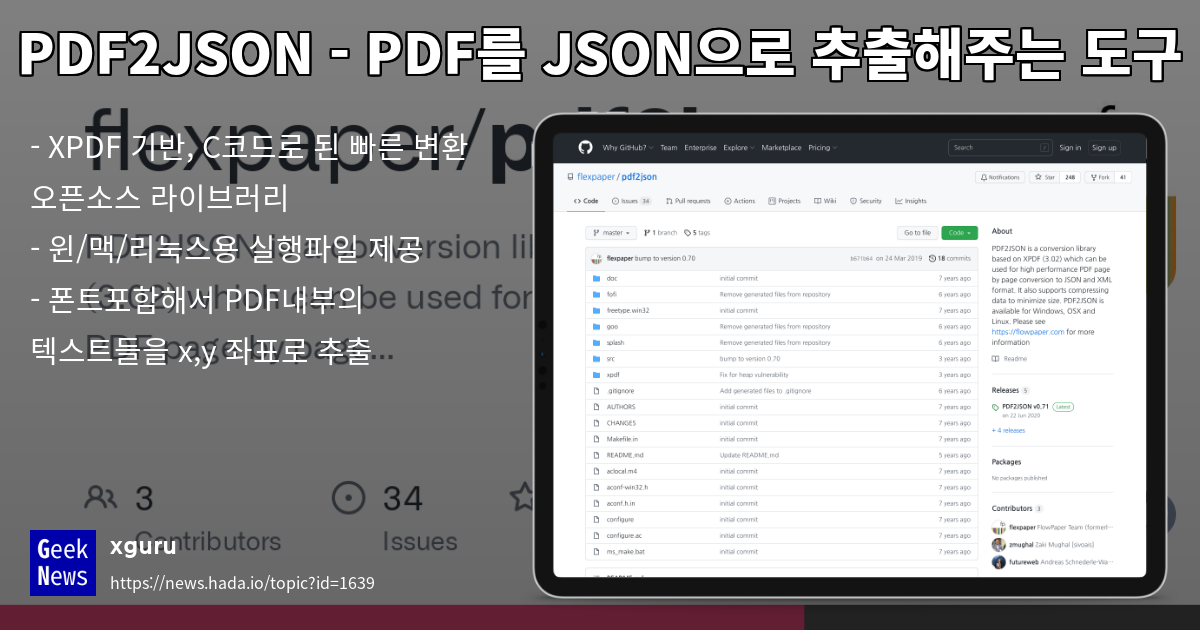PDF2JSON - PDF를 JSON으로 추출해주는 도구 | GeekNews