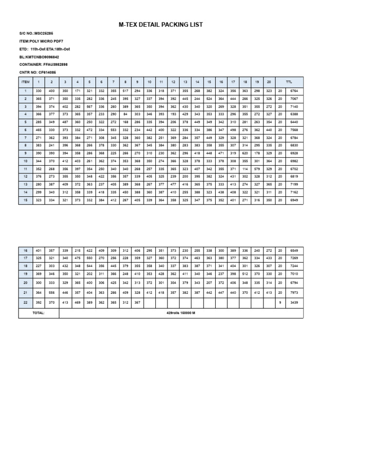 M-Tex Detail Packing List: S/C NO.:MSC25285 Item:Poly Micro Pdf7 ETD ...
