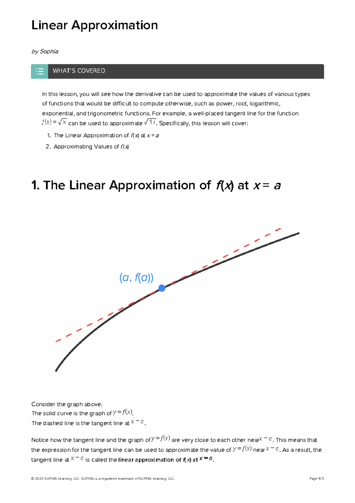 Calculus I unit-3-tutorials PDF7 - Linear Approximation by Sophia In ...