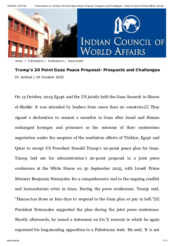 (PDF) Trump's 20 Point Gaza Peace Proposal: Prospects and Challenges