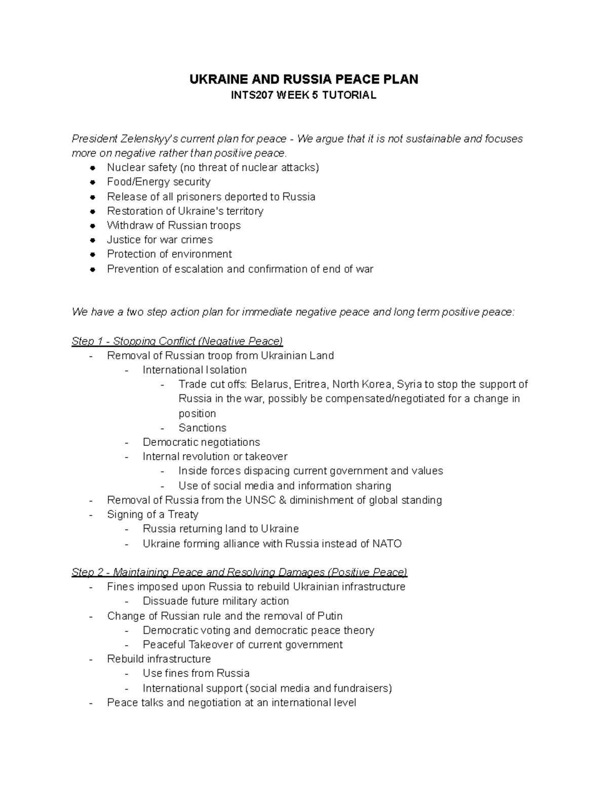 Steps to writing a Peace Plan - UKRAINE AND RUSSIA PEACE PLAN INTS207 ...