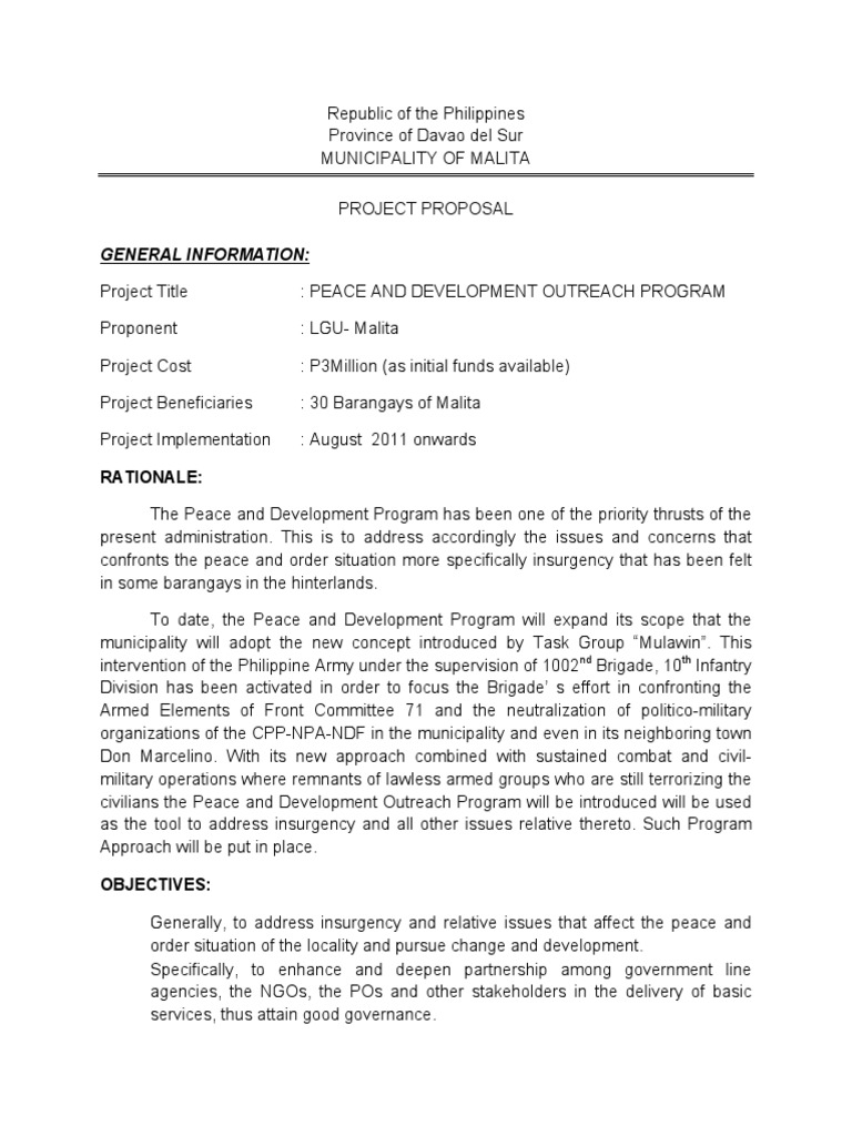 Project Proposal - Peace and Development Outreach Program | Insurgency ...