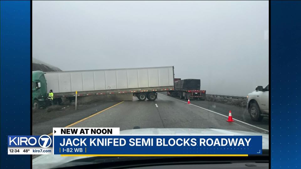 Video: Jack knifed semi blocks roadway