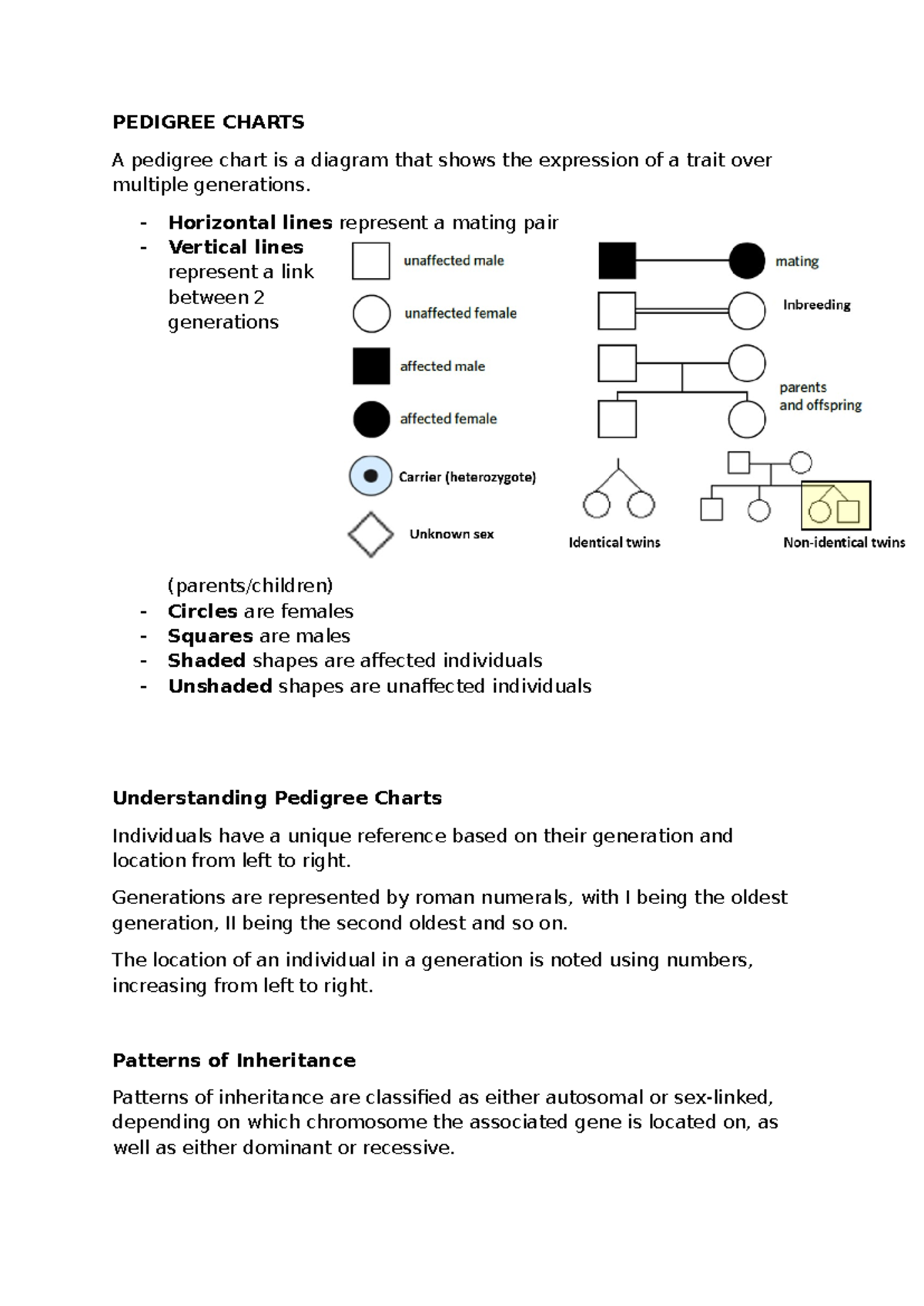 Understanding Pedigree Charts: Patterns of Inheritance Explained - Studocu