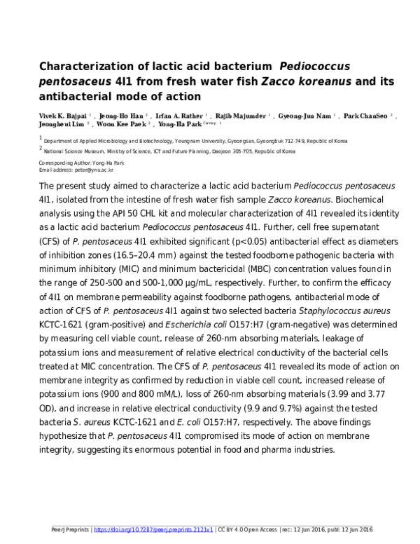 (PDF) Characterization of lactic acid bacterium Pediococcus pentosaceus ...