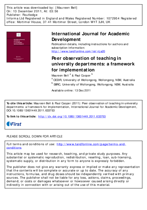 (PDF) Peer Observation as a Means to Develop Teachers’ Professionalism