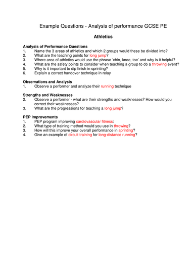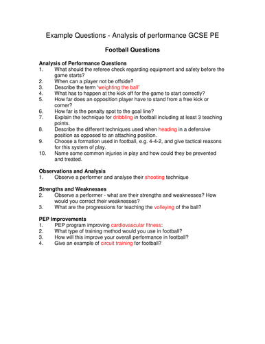GCSE PE Analysis of Performance Questions | Teaching Resources