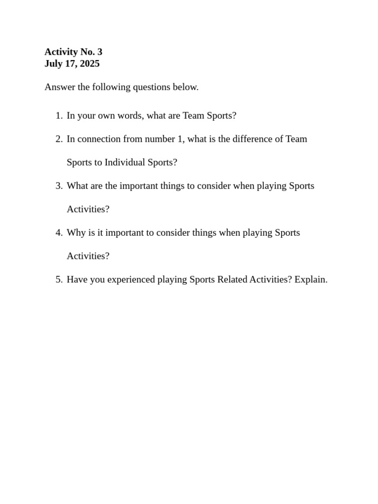 Physical Education Questions