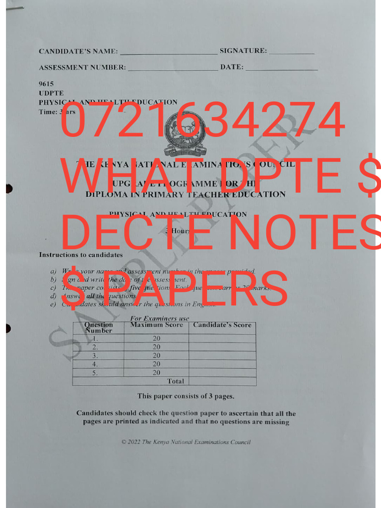 GCSE PE - Sample Assessment Questions | PDF