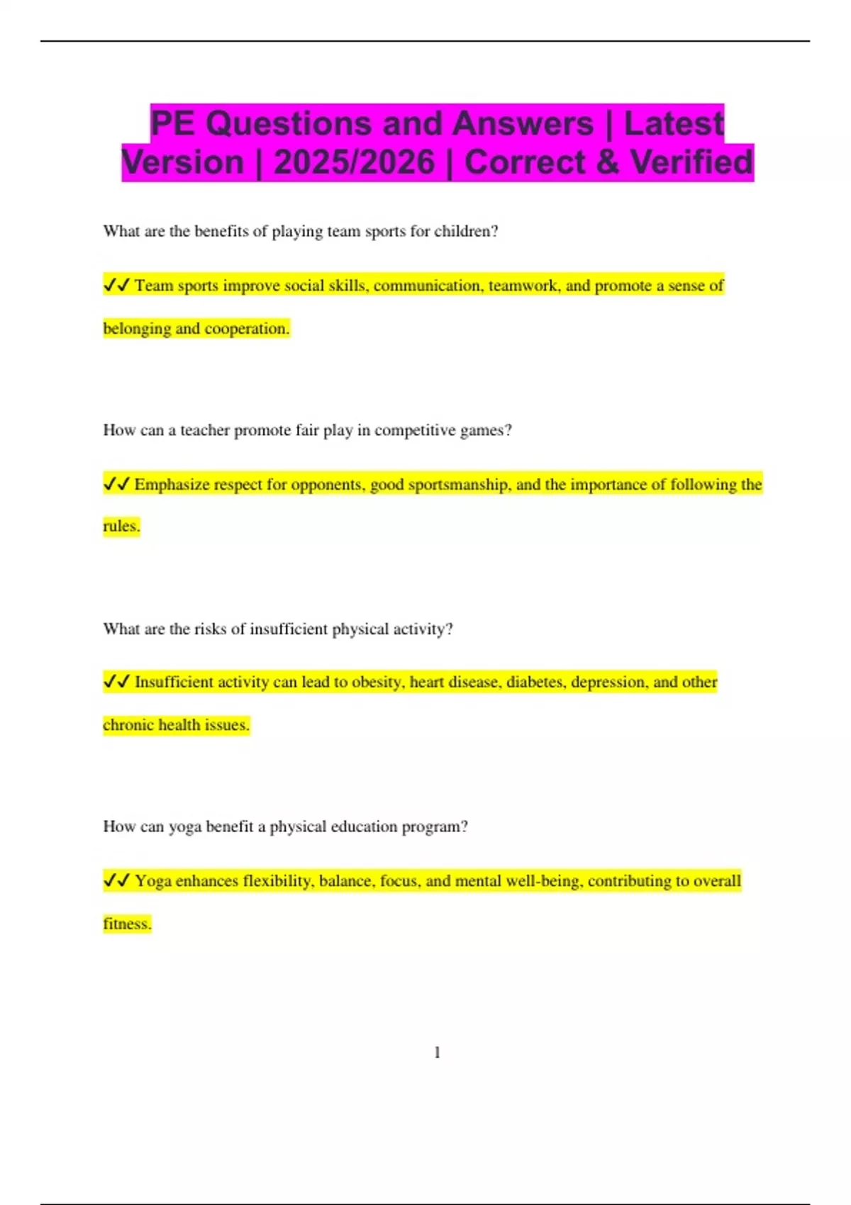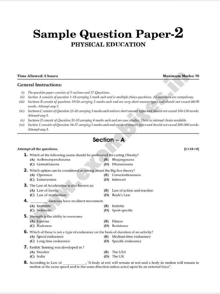 Pe questions for practice | Assignments Physical education | Docsity