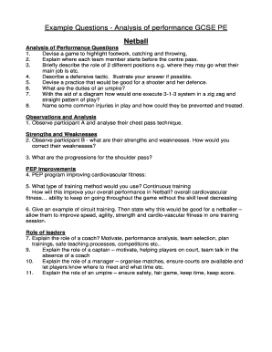 Fillable Online Example Questions - Analysis of performance GCSE PE Fax ...