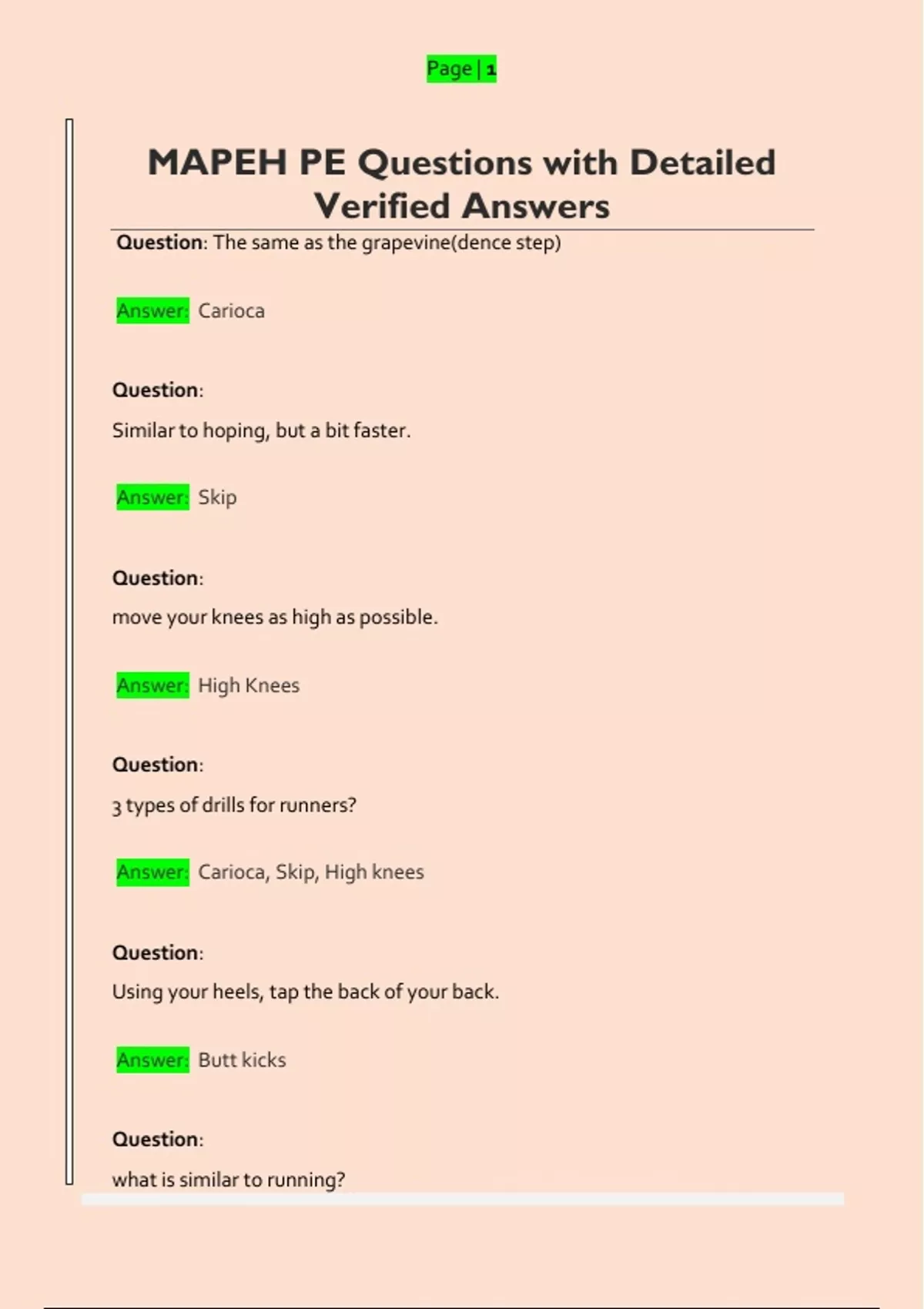 MAPEH PE Questions with Detailed Verified Answers - MAPEH PE - Stuvia US