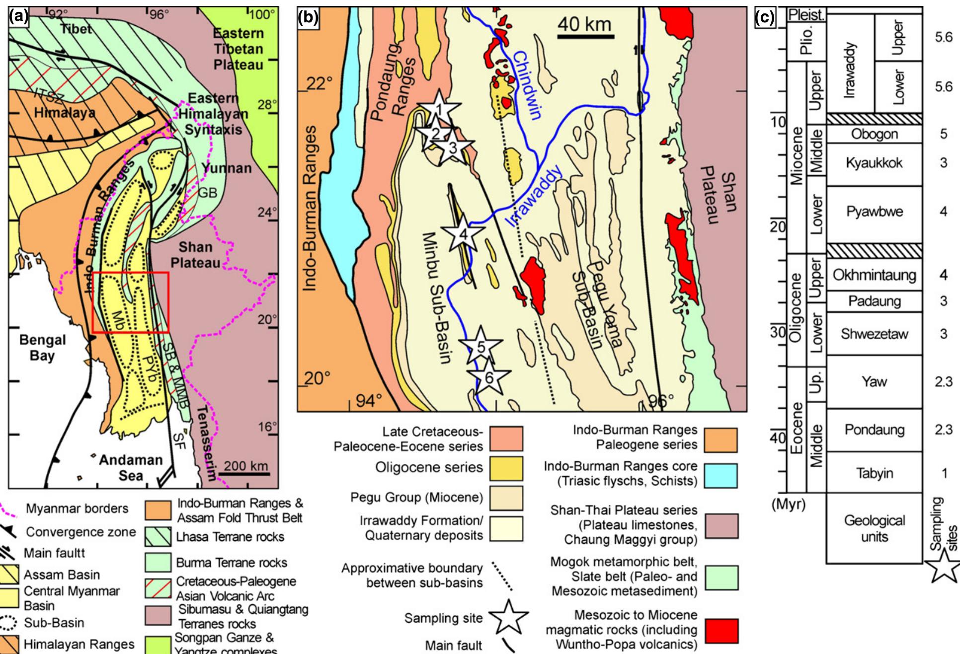 (a) simplified geological map of central myanmar and eastern
