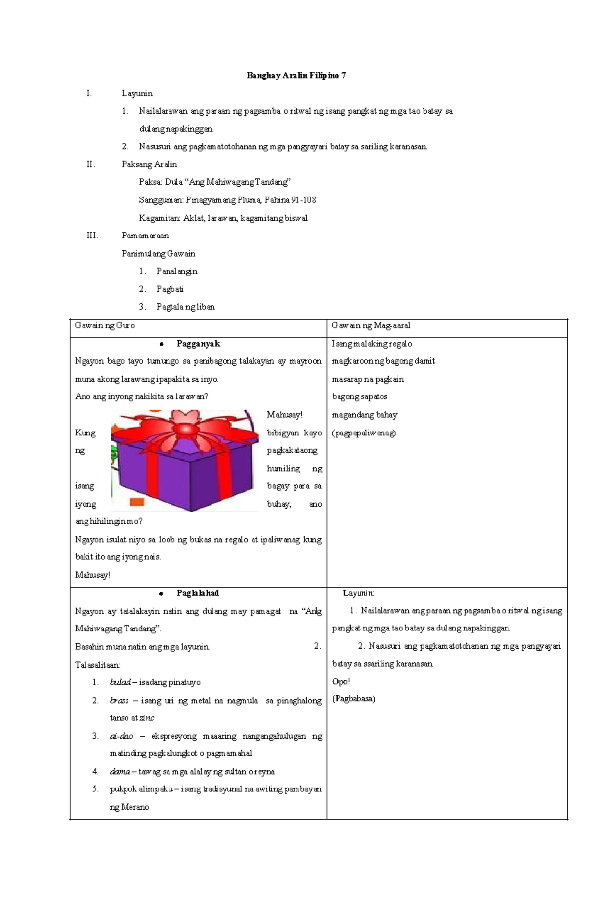 Banghay Aralin Filipino 7 - Layunin Nailalarawan ang paraan ng pagsamba ...