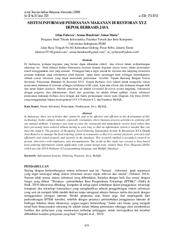 (PDF) Sistem Informasi Pemesanan Makanan di Restoran XYZ Depok Berbasis ...